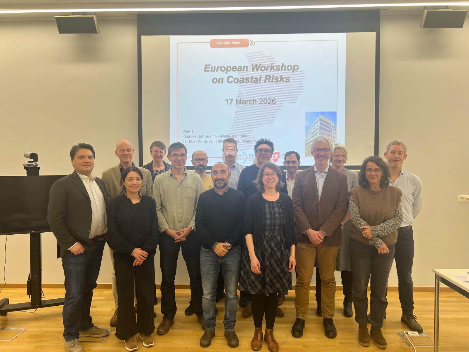 Liste de participants : Arjen Luijenkijk (Deltares /TU DELFT) Dano Roelvink (IHE Delft and Deltares), Annelies Bolle (IMDC), Joris Vanlede (Flanders Hydraulics), Nassos Vofeidis (Kiel University), Javier Benavente (University of Cadiz), Svetlana Jervrejeva (National Oceanography Center), Susana Costas (Univ. Algarve), Annaig Le Guen (CNRS/ IR ILICO), Nathaniel Bensoussan (IFREMER/JERICO), Jeanne Dachary-Bernard (INRAE), Philippe Quevauviller (AFPCN), Delphine Jouvin (Region Nouvelle Aquitaine), Antoine Videau (Region Nouvelle Aquitaine), Goneri Le Cozannet (BRGM), Thomas Dewez (BRGM), Cyril Mallet (BRGM), Aldo Sottolichio (Université de Bordeaux) et Vania Ruiz Gonzalez (Université de Bordeaux)